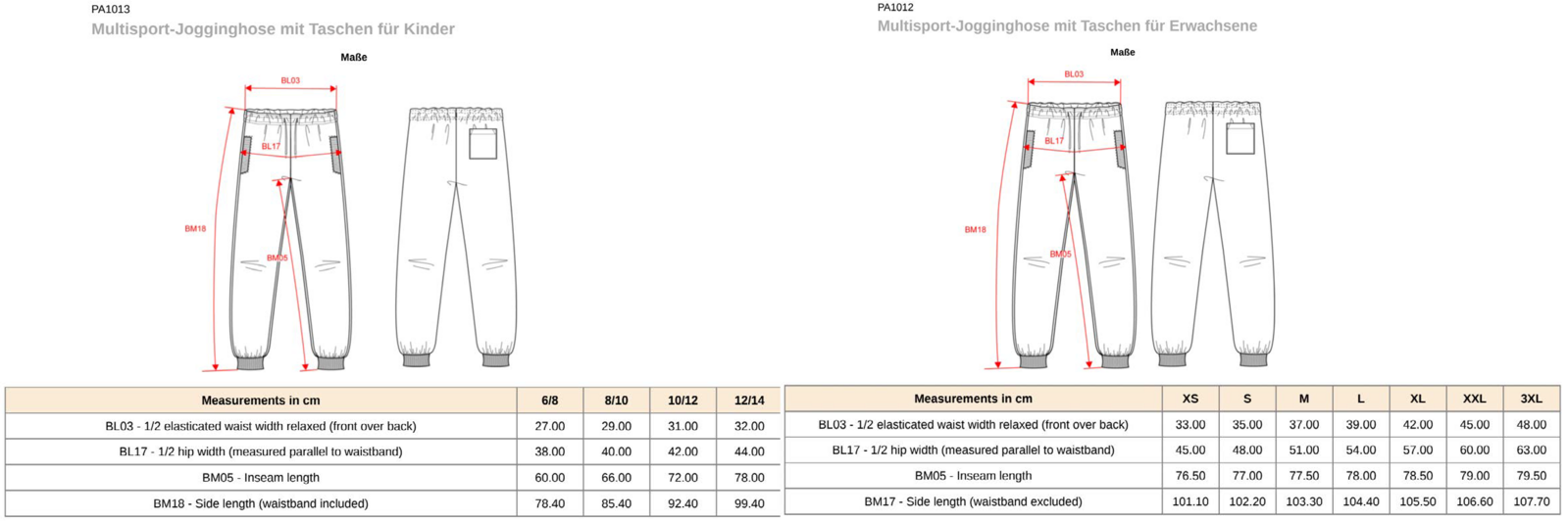 Kinder Größen
