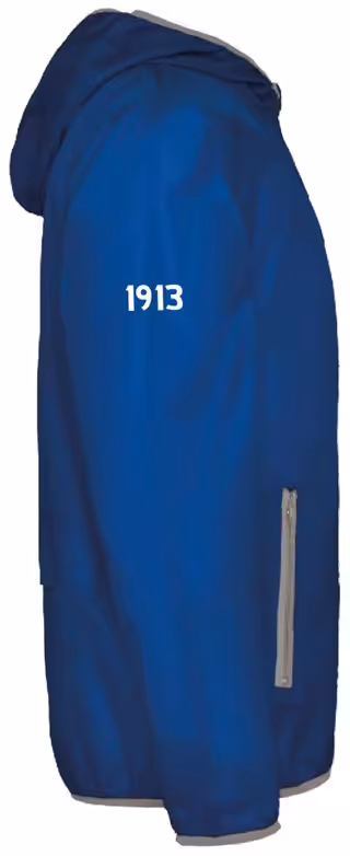 leichte Regenjacke mit Kapuze in royalblau mit Druck FCS