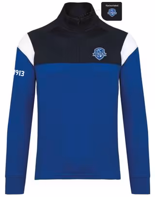 Unisex Trainings-Sweatshirt mit 1/4 Reißverschluss in royalblau/navy/weiß