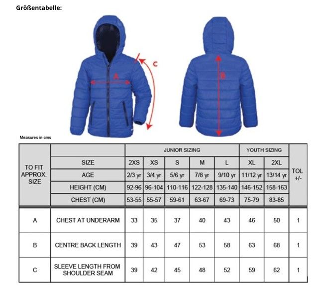 Außen/Futter: 100% Polyester, Füllung: 160g/m², 100% Polyester